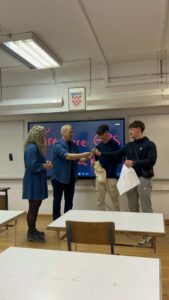 Učenike je na početku susreta pozdravila Željka Plužarić iz Sektora za pravne poslove i vođenje ljudskih potencijala te kratko predstavila djelokrug DGU. Predavanje na temu službene kartografije održao je Igor Vilus iz Službe za topografsku izmjeru i državne karte, ujedno bivši učenik naše škole.