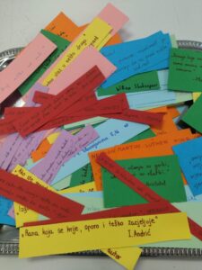 Natjecateljski duh bio je prisutan na turniru u belotu gdje su ekipe odmjerile snage uz dozu strategije i zabave. Za one sklonije mirnijem i refleksivnom radu organizirana je aktivnost u kojoj su učenici, uz opuštajuću glazbu, pretraživali citate poznatih nobelovaca, povjesničara, književnika i filozofa, potom ih zapisivali i kreativno uređivali kao simbolične poruke za druge. Posebno zanimanje izazvalo je interaktivno natjecanje u obliku potrage uz pomoć GPS tehnologije u kojem su sudionici rješavali zagonetke i tražili skrivene točke u prostoru. Važan dio programa bila je i edukativna radionica prve pomoći koju su proveli volonteri Hrvatskog Crvenog križa. Učenici su na lutkama uvježbavali postupke oživljavanja, Heimlichov zahvat i pravilno reagiranje u izvanrednim situacijama. Uz to, organizirano je i druženje sa školskom psihologinjom koje je učenicima pružilo prostor za otvoren razgovor o svakodnevnim izazovima, mislima i emocijama s naglaskom na prepoznavanje i razumijevanje tzv. unutarnjeg sabotera, kojeg su sudionici i kreativno oblikovali.